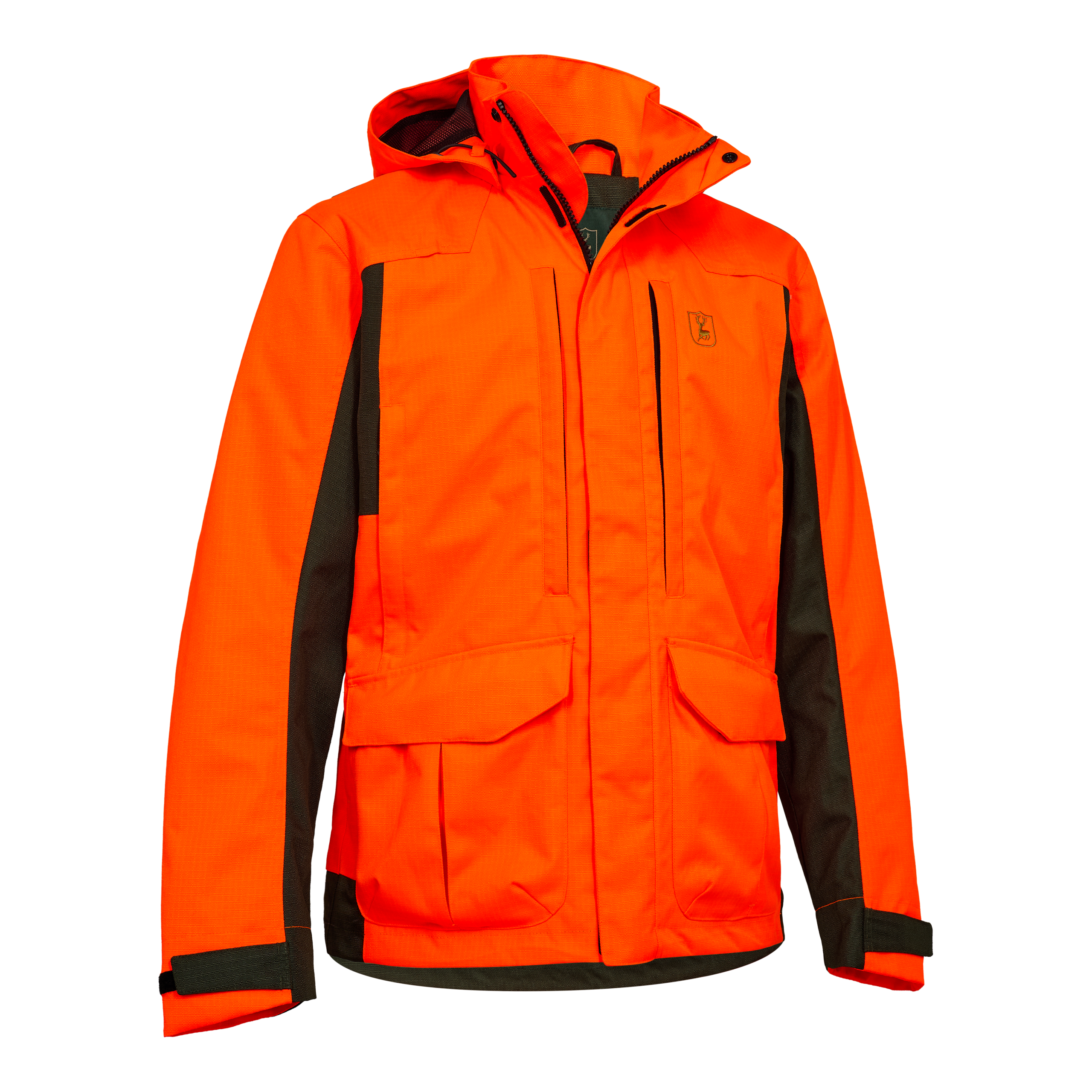 • Zwei tiefe Brusttaschen mit verdeckten Reißverschlüssen und vorbereiteter Öffnung für eine Antenne