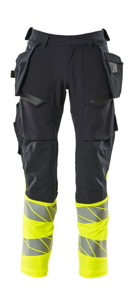 – Knietaschen aus in zwei Richtungen dehnbarem CORDURA®, die zusätzliche Bewegungsfreiheit beim Knien bieten.